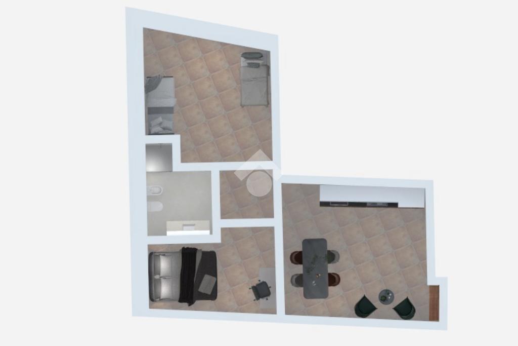 L’appartamento si apre su una luminosa zona giorno con cucina a vista, organizzata in modo funzionale con angolo cottura e zona pranzo. Dal soggiorno si accede al disimpegno che conduce alla zona notte, composta da due camere da letto e un bagno cieco, completo di sanitari in ceramica e box doccia.