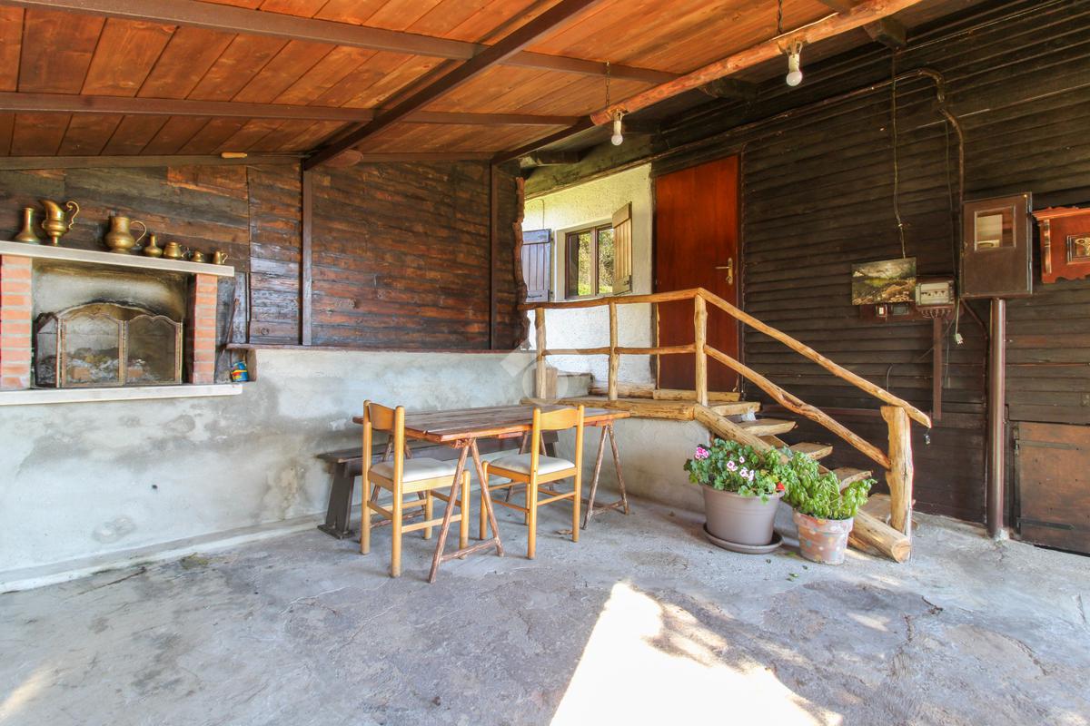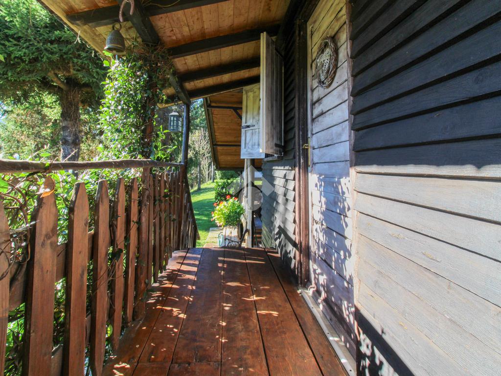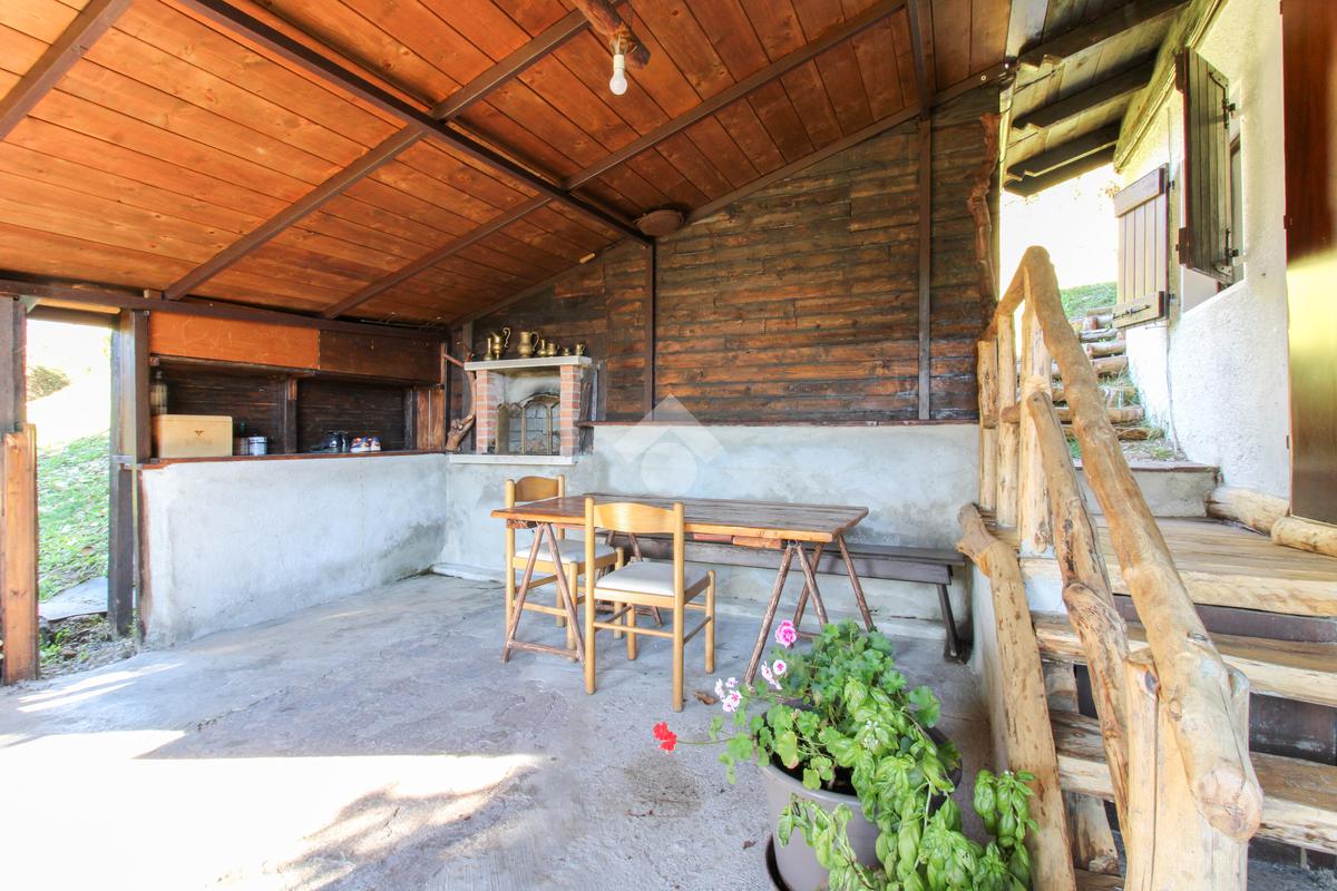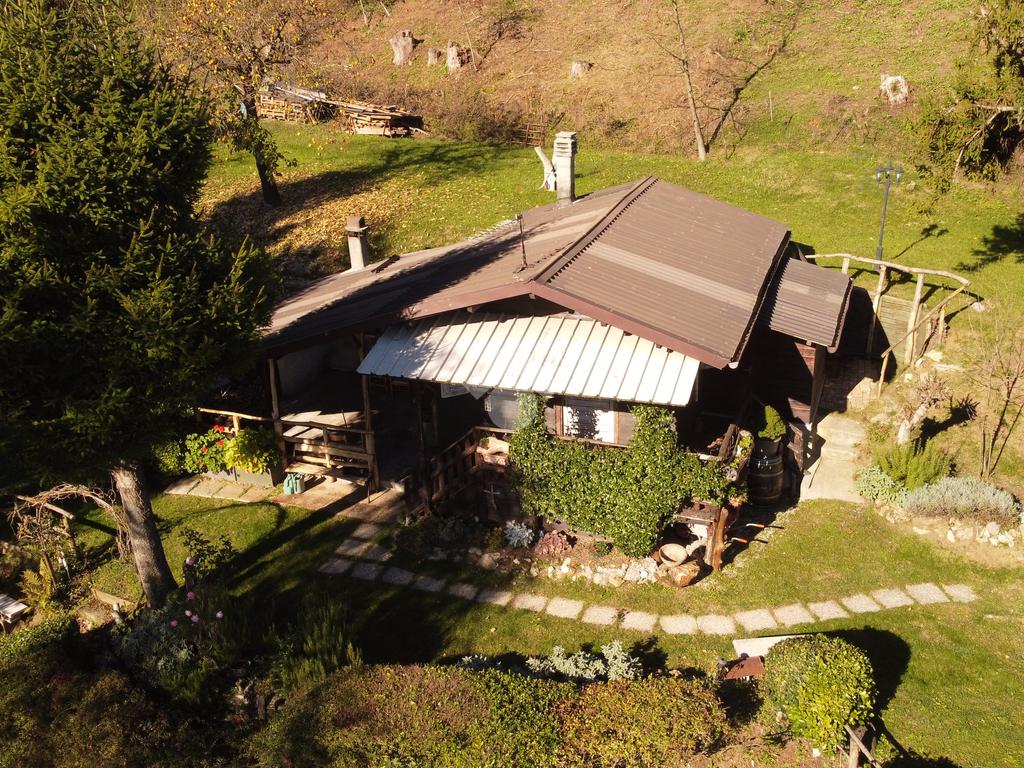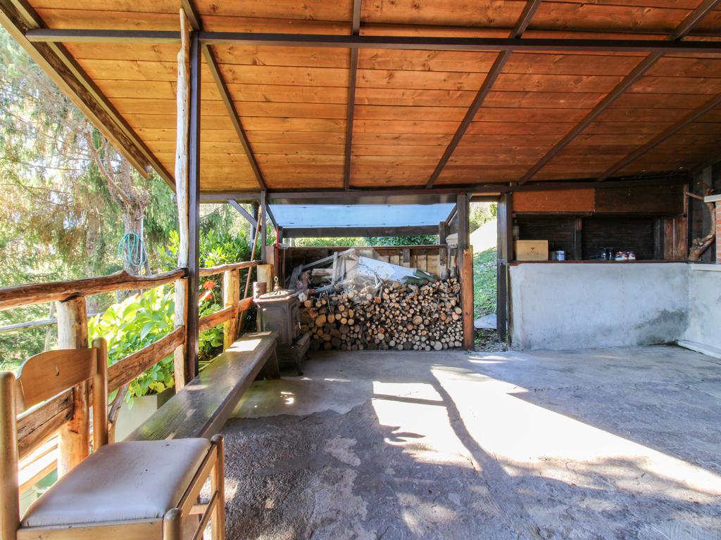 Il bagno è accessibile dall’esterno e non collegato internamente all’abitazione principale. Due lati dell’abitazione sono arricchiti da un balconcino da cui si può ammirare una splendida vista sulle montagne circostanti. La zona esterna è completa di porticato coperto e di un secondo caminetto.