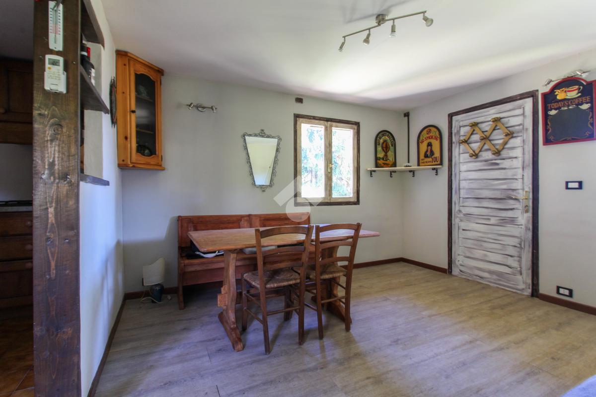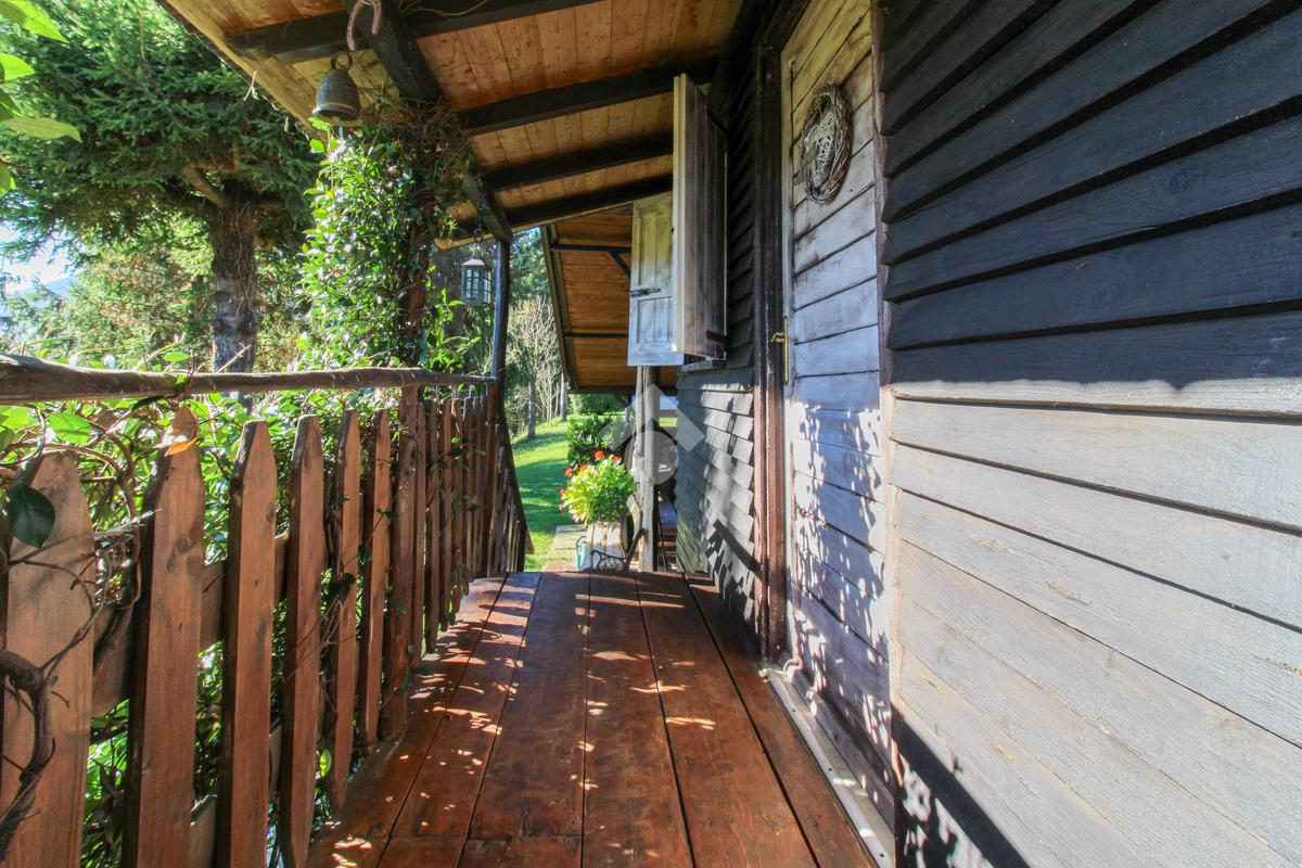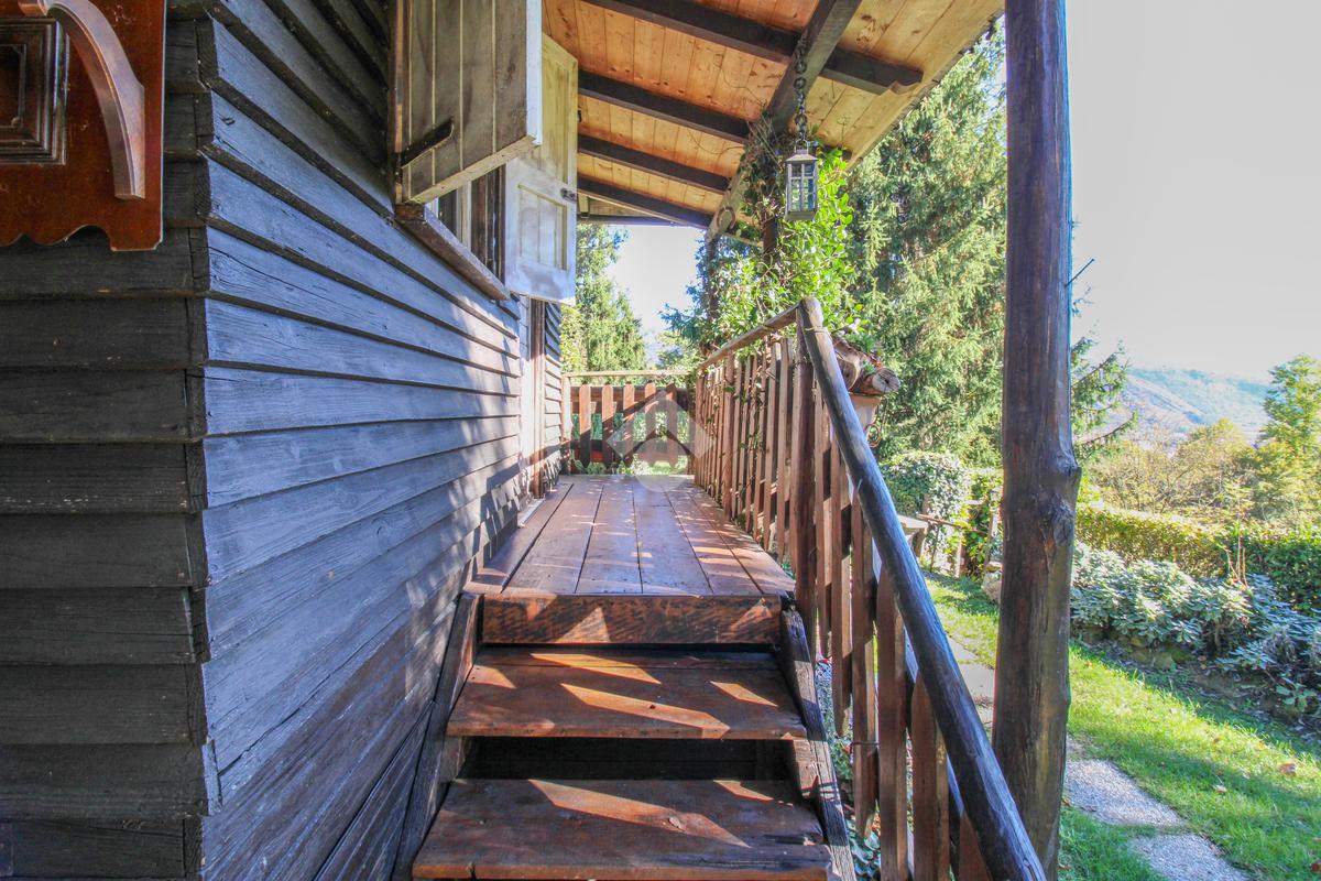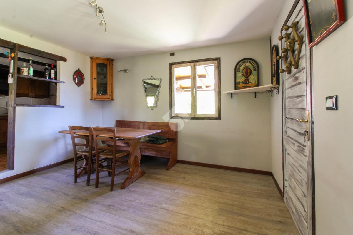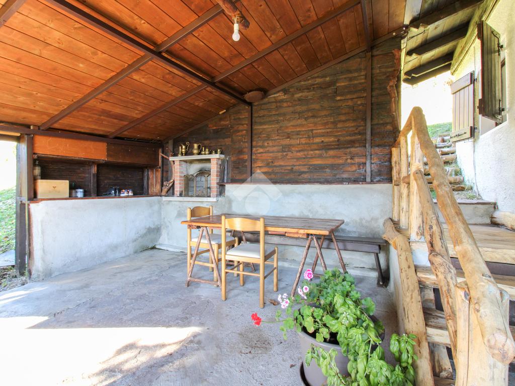 Il bagno è accessibile dall’esterno e non collegato internamente all’abitazione principale. Due lati dell’abitazione sono arricchiti da un balconcino da cui si può ammirare una splendida vista sulle montagne circostanti. La zona esterna è completa di porticato coperto e di un secondo caminetto.