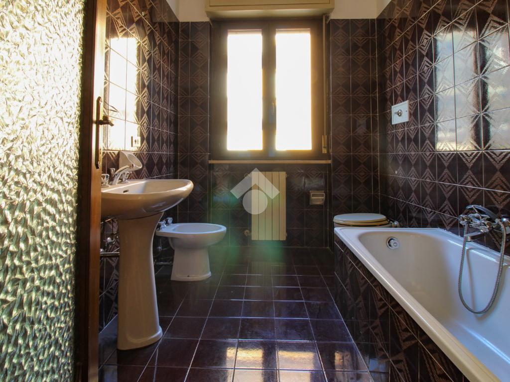 Tramite disimpegno, raggiungiamo quindi le due camere da letto matrimoniali e i due bagni, di cui uno cieco, e l'altro completo di sanitari in ceramica e vasca da bagno.