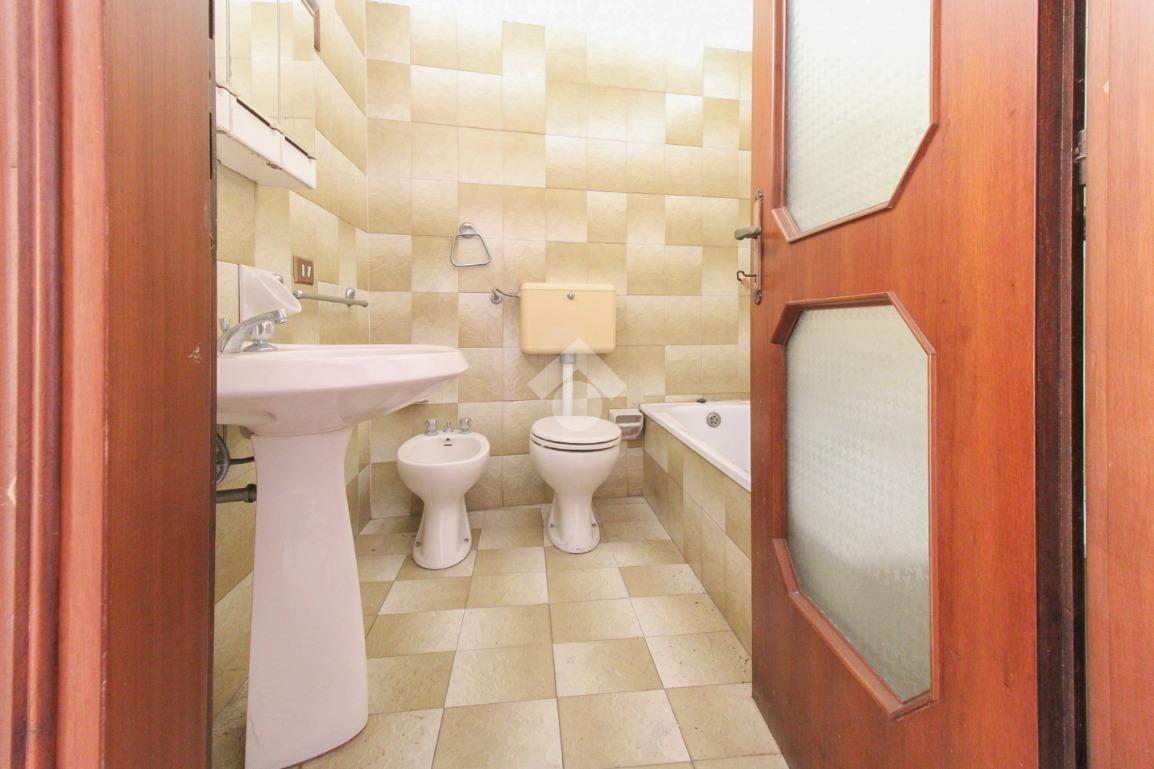 Proseguendo, tramite disimpegno, raggiungiamo la camera da letto matrimoniale e il bagno cieco, dotato di sanitari in ceramica.
