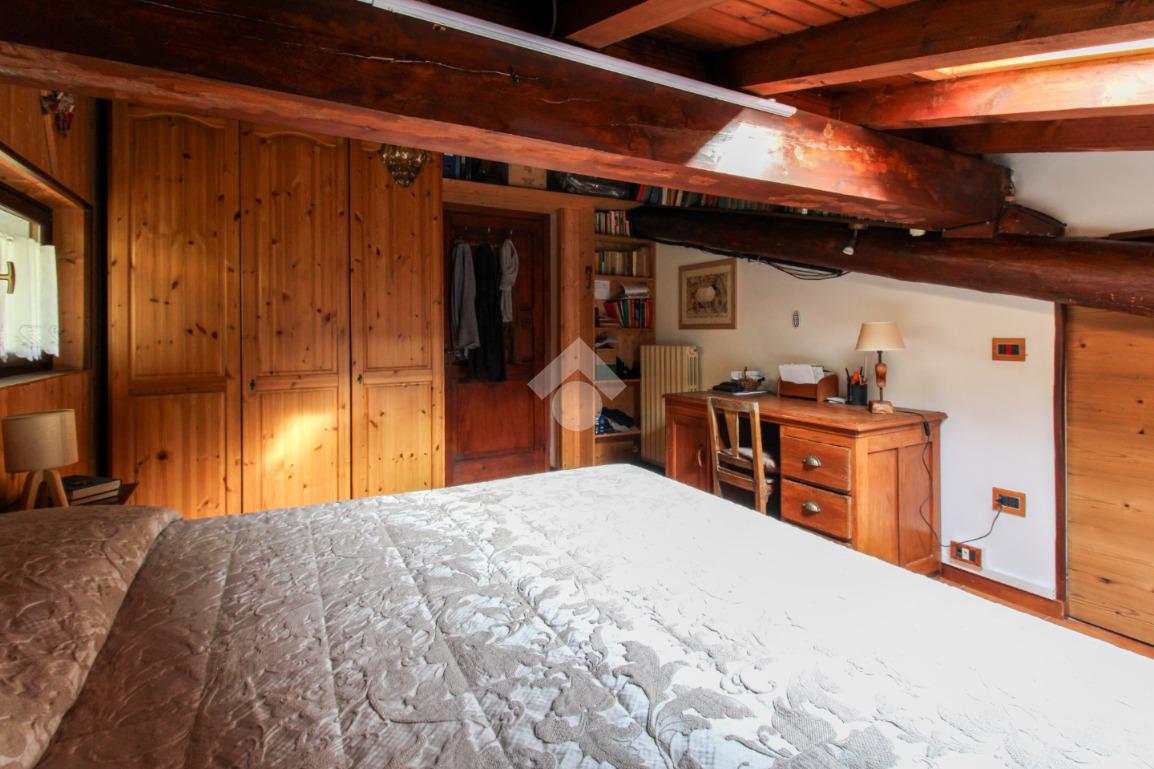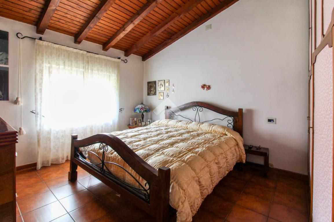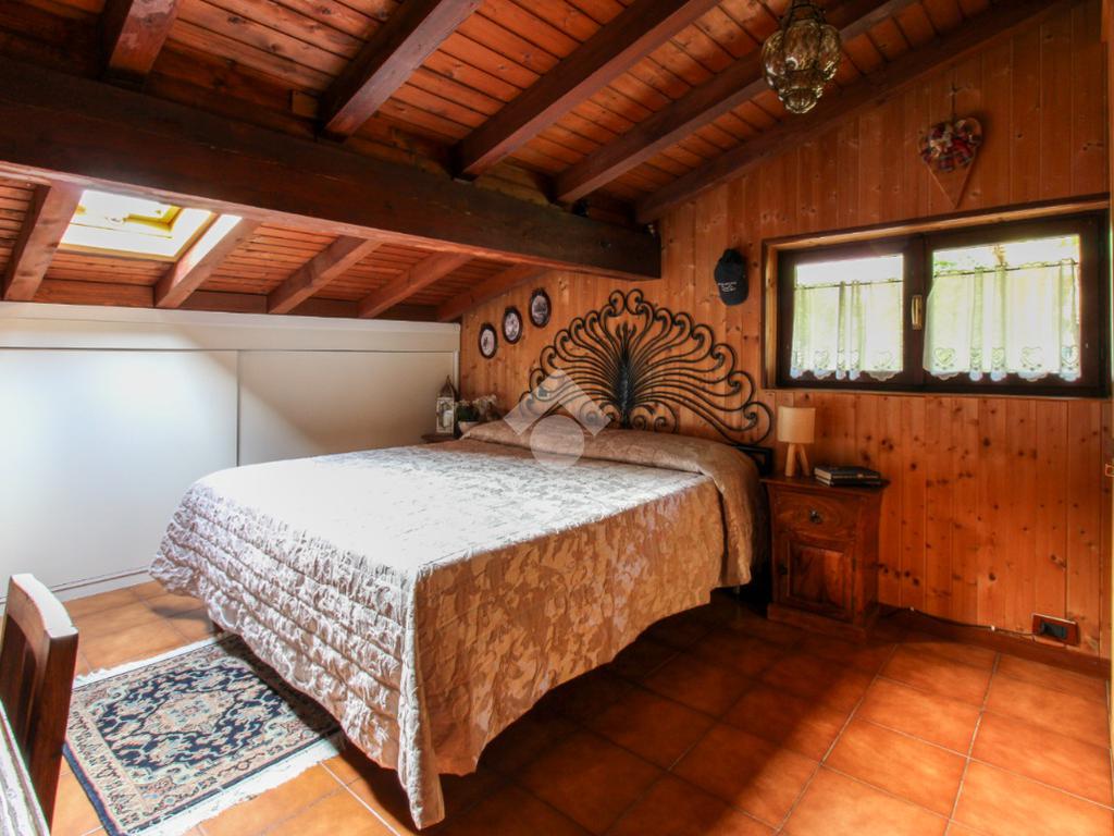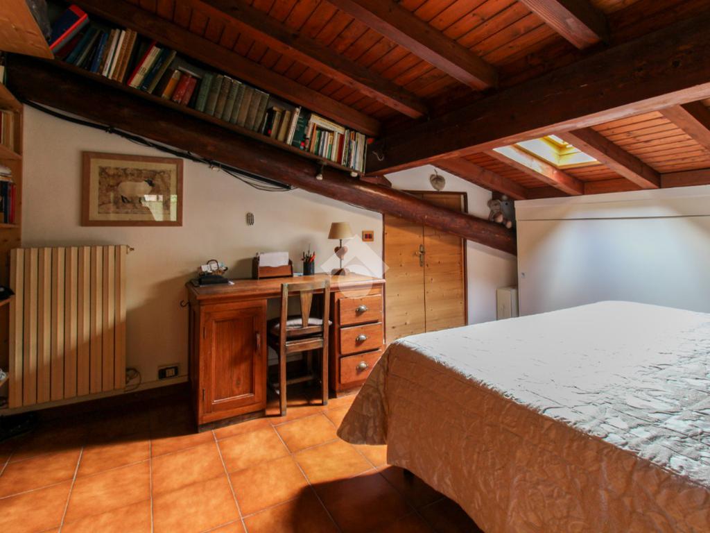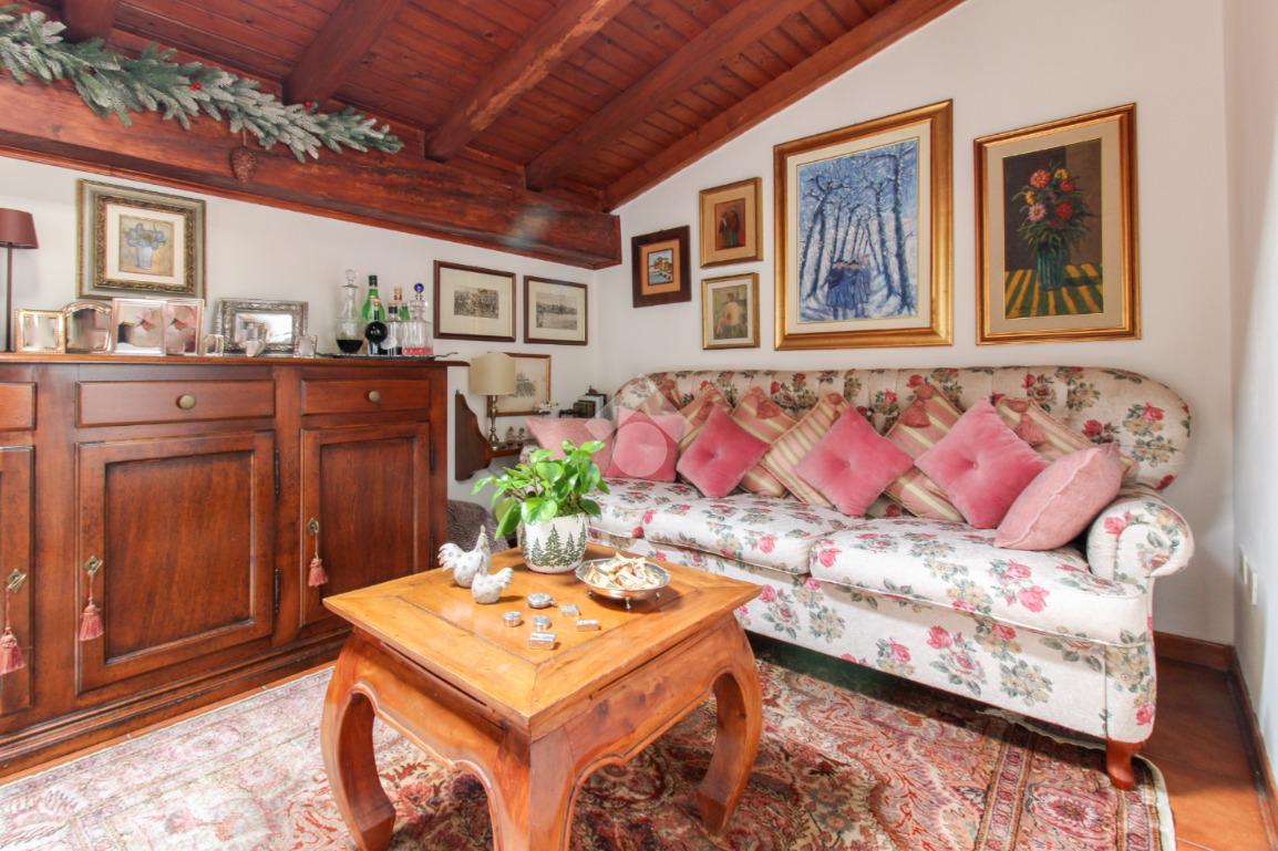 Attraverso un’altra scala esterna, situata nel porticato comunicante con il primo appartamento, si raggiunge il secondo alloggio, un trilocale posto al piano superiore. Anche qui l’ingresso si apre su un piccolo corridoio che collega i vari ambienti: due camere matrimoniali, di cui una arricchita da una cabina armadio, un bagno finestrato con vasca, una cucina separata e un soggiorno estremamente luminoso grazie ai lucernari, impreziosito da un caminetto che dona calore e atmosfera. Dal corridoio, una scaletta sale verso un piccolo soppalco, ideale come studio privato o angolo dedicato alla lettura e al relax.