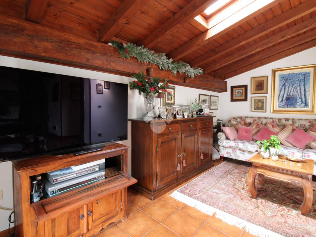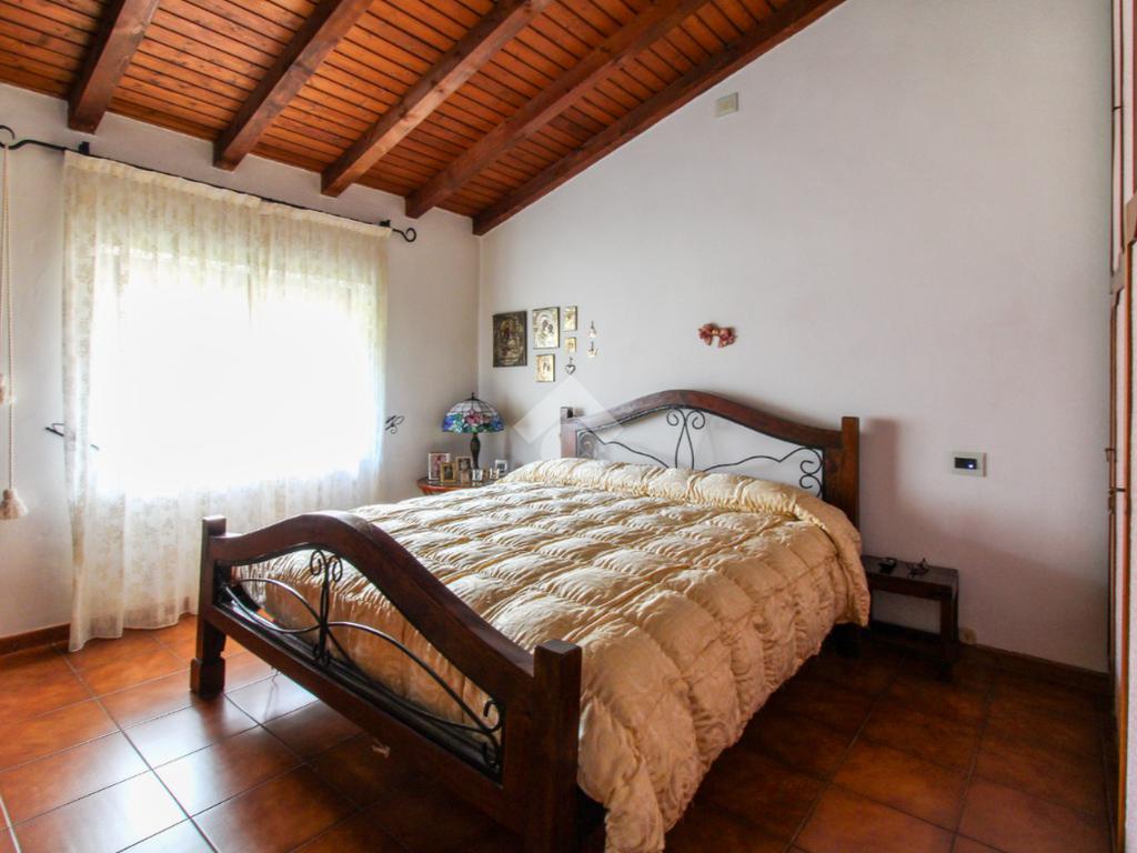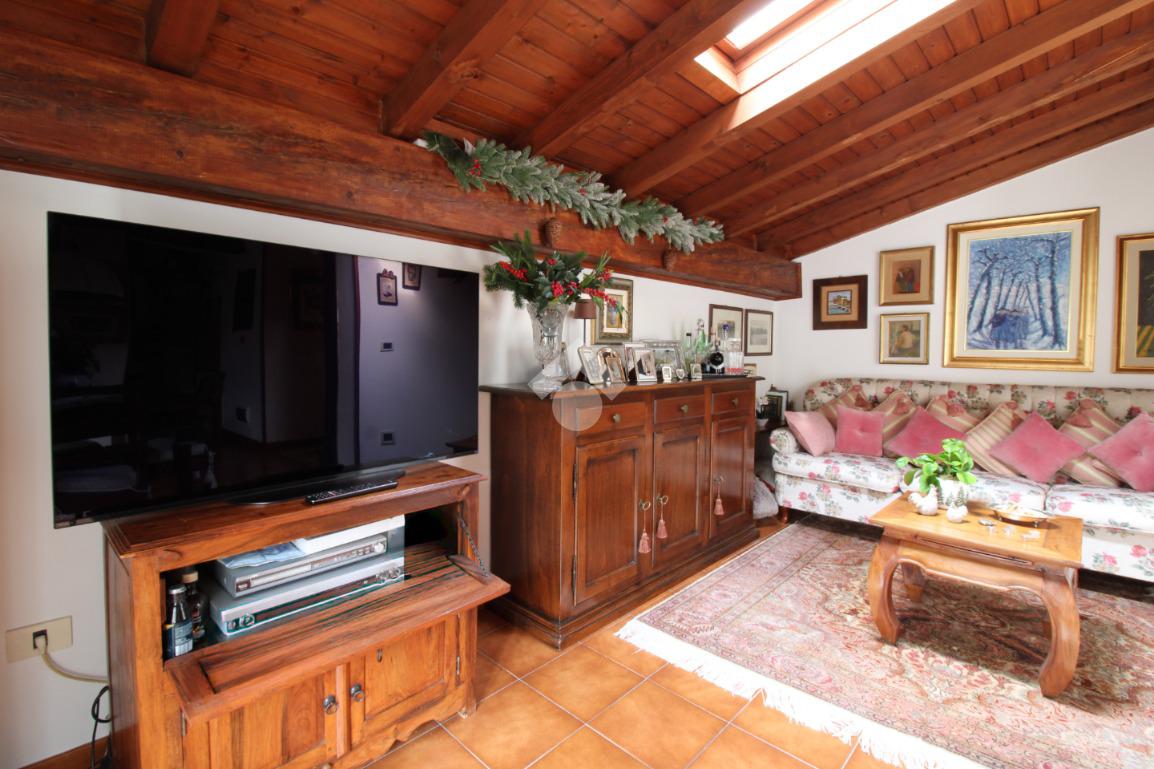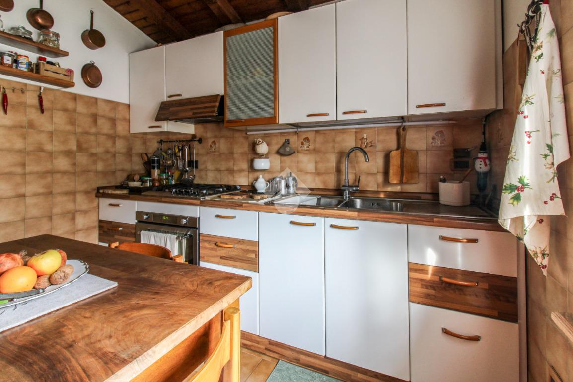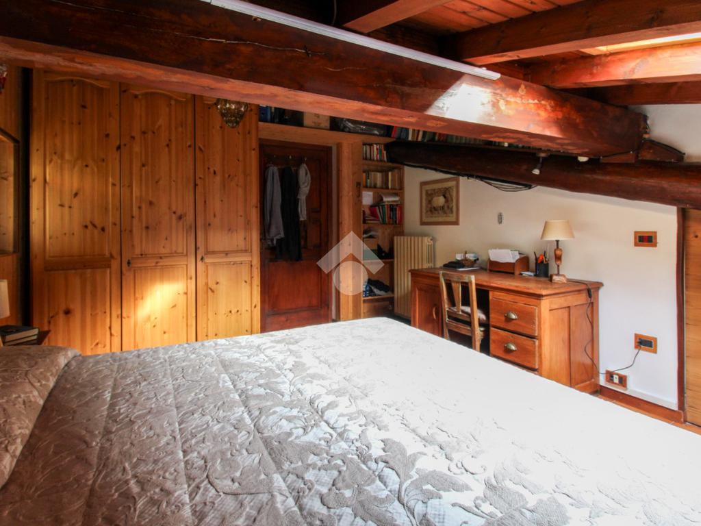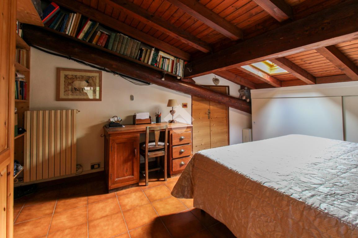 Attraverso un’altra scala esterna, situata nel porticato comunicante con il primo appartamento, si raggiunge il secondo alloggio, un trilocale posto al piano superiore. Anche qui l’ingresso si apre su un piccolo corridoio che collega i vari ambienti: due camere matrimoniali, di cui una arricchita da una cabina armadio, un bagno finestrato con vasca, una cucina separata e un soggiorno estremamente luminoso grazie ai lucernari, impreziosito da un caminetto che dona calore e atmosfera. Dal corridoio, una scaletta sale verso un piccolo soppalco, ideale come studio privato o angolo dedicato alla lettura e al relax.