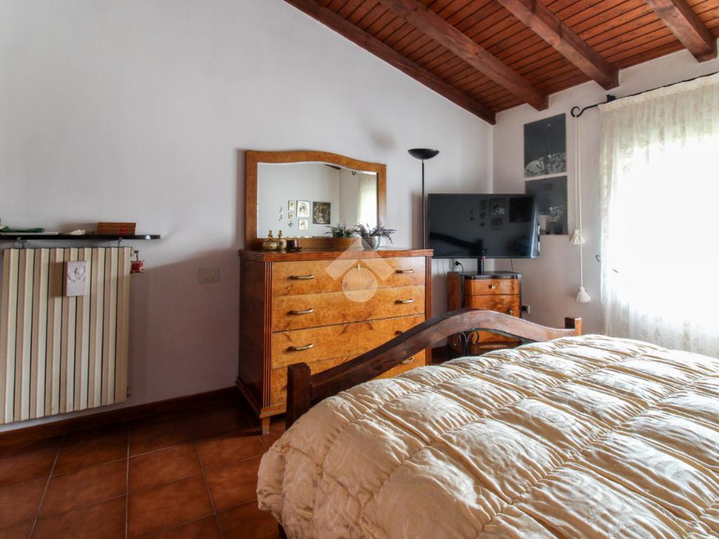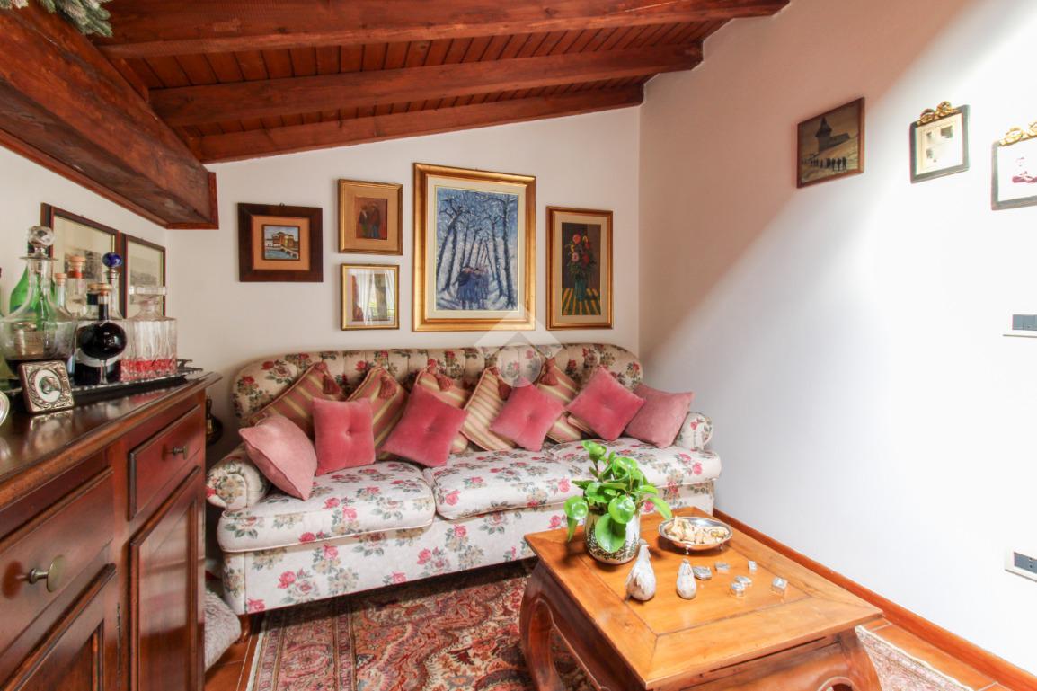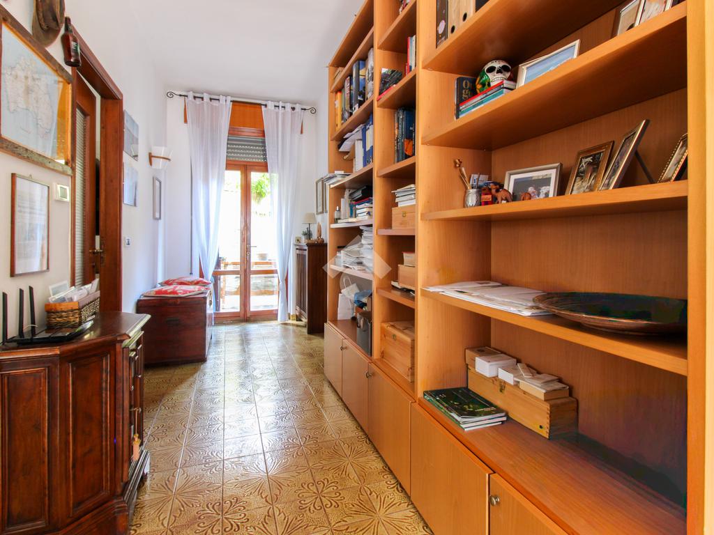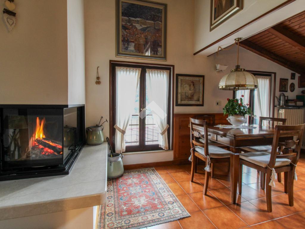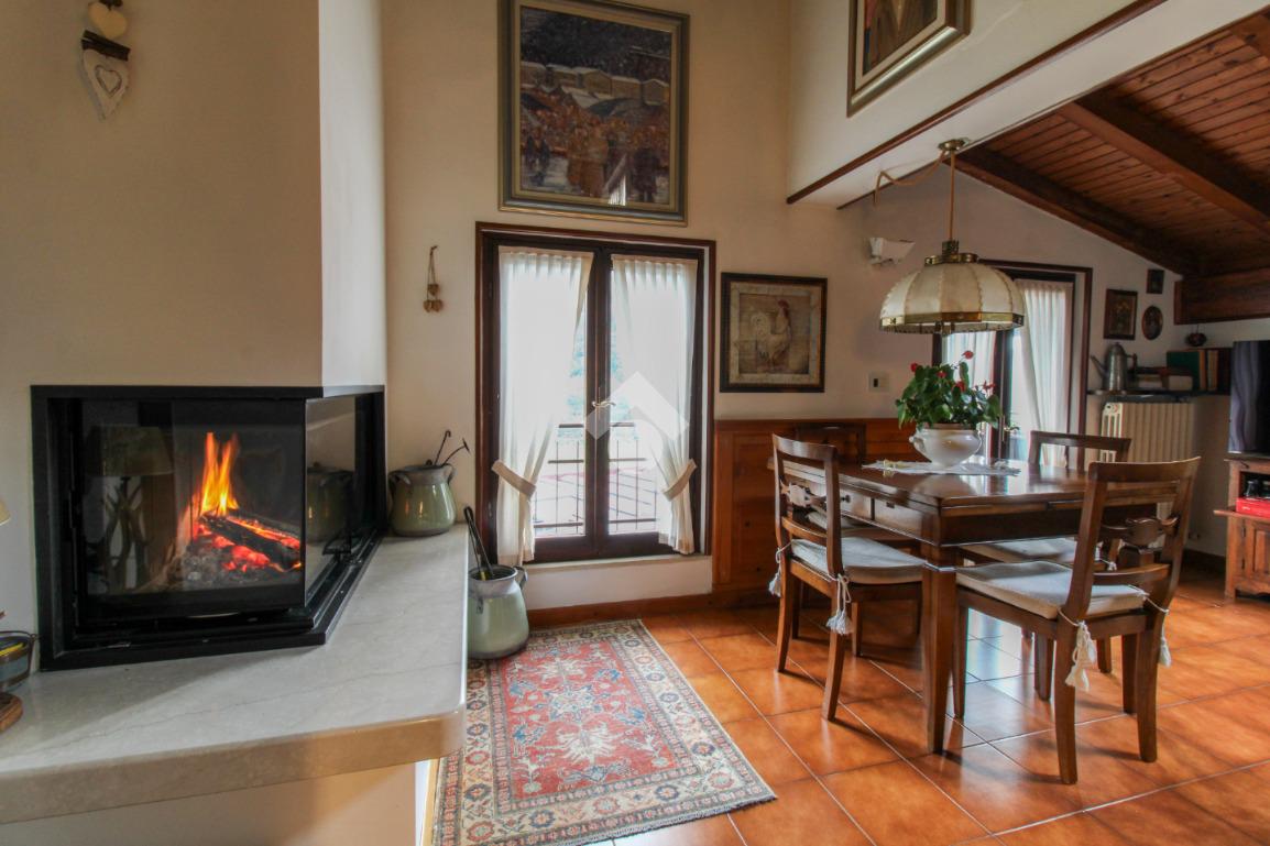 Attraverso un’altra scala esterna, situata nel porticato comunicante con il primo appartamento, si raggiunge il secondo alloggio, un trilocale posto al piano superiore. Anche qui l’ingresso si apre su un piccolo corridoio che collega i vari ambienti: due camere matrimoniali, di cui una arricchita da una cabina armadio, un bagno finestrato con vasca, una cucina separata e un soggiorno estremamente luminoso grazie ai lucernari, impreziosito da un caminetto che dona calore e atmosfera. Dal corridoio, una scaletta sale verso un piccolo soppalco, ideale come studio privato o angolo dedicato alla lettura e al relax.