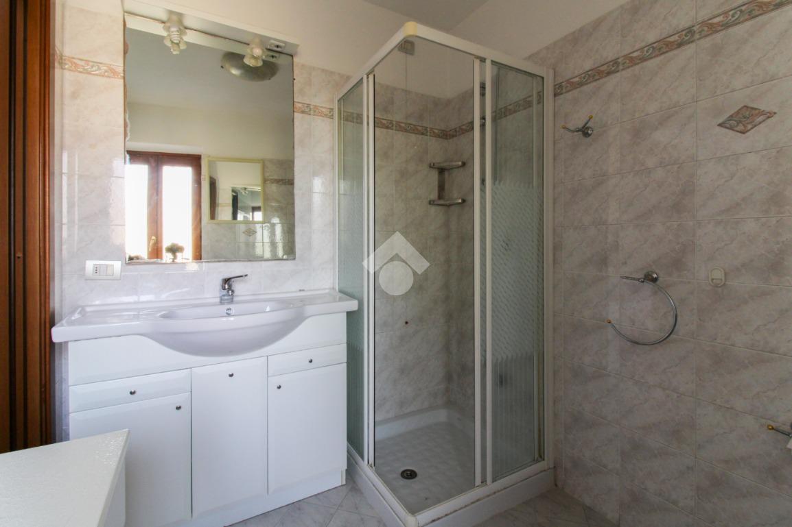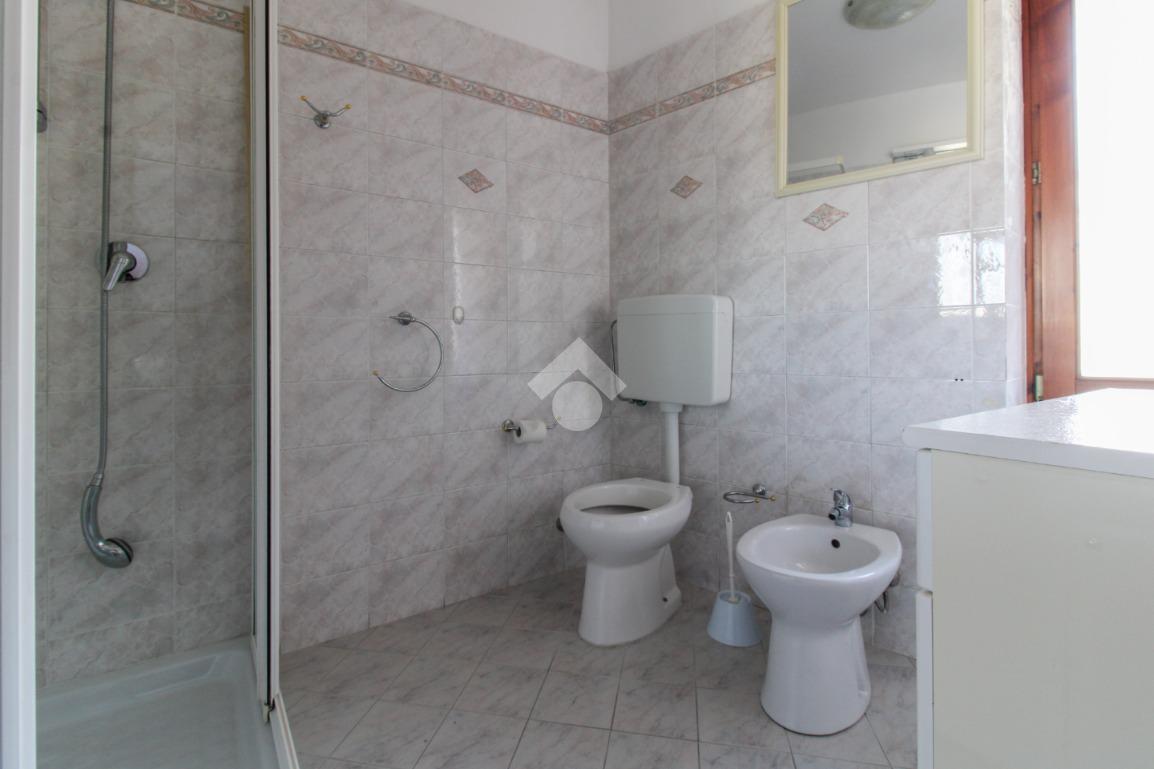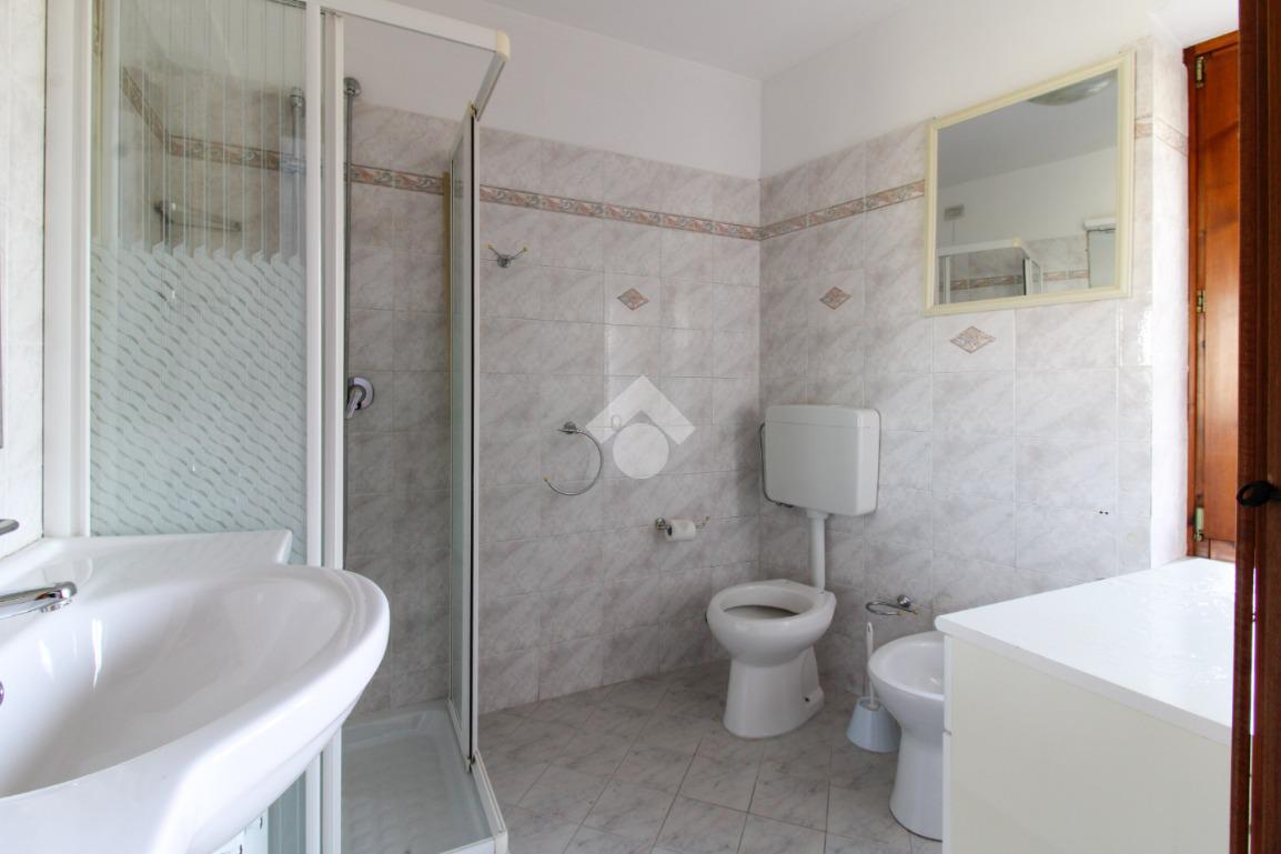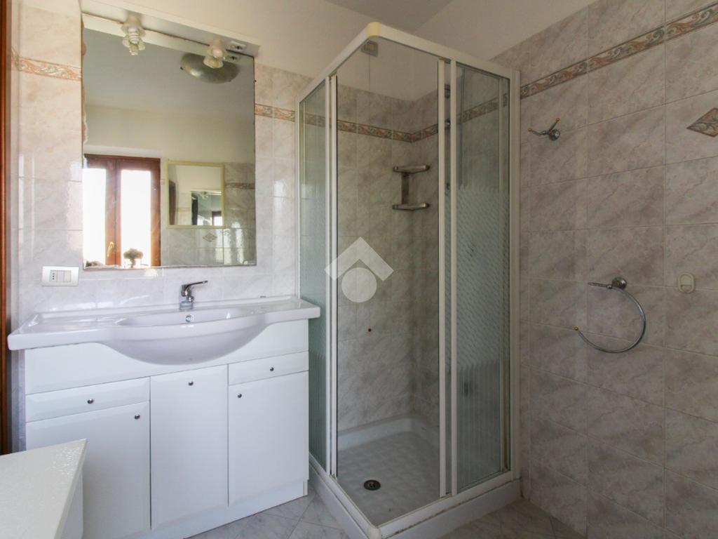 Scendendo al piano terra, sempre tramite la scala interna, troviamo un secondo bagno con doccia e l’accesso diretto al box auto singolo, che può essere sfruttato anche come cantina o spazio di stoccaggio. La corte condominiale consente inoltre il parcheggio di un secondo veicolo proprio di fronte all’ingresso dell’autorimessa.