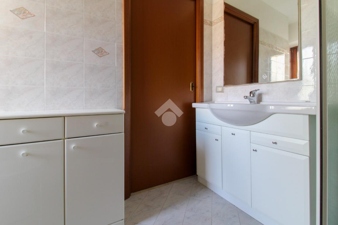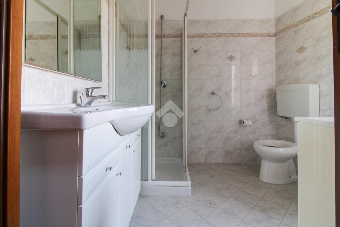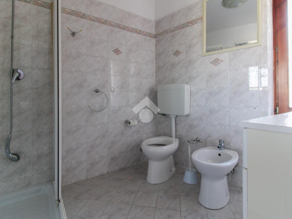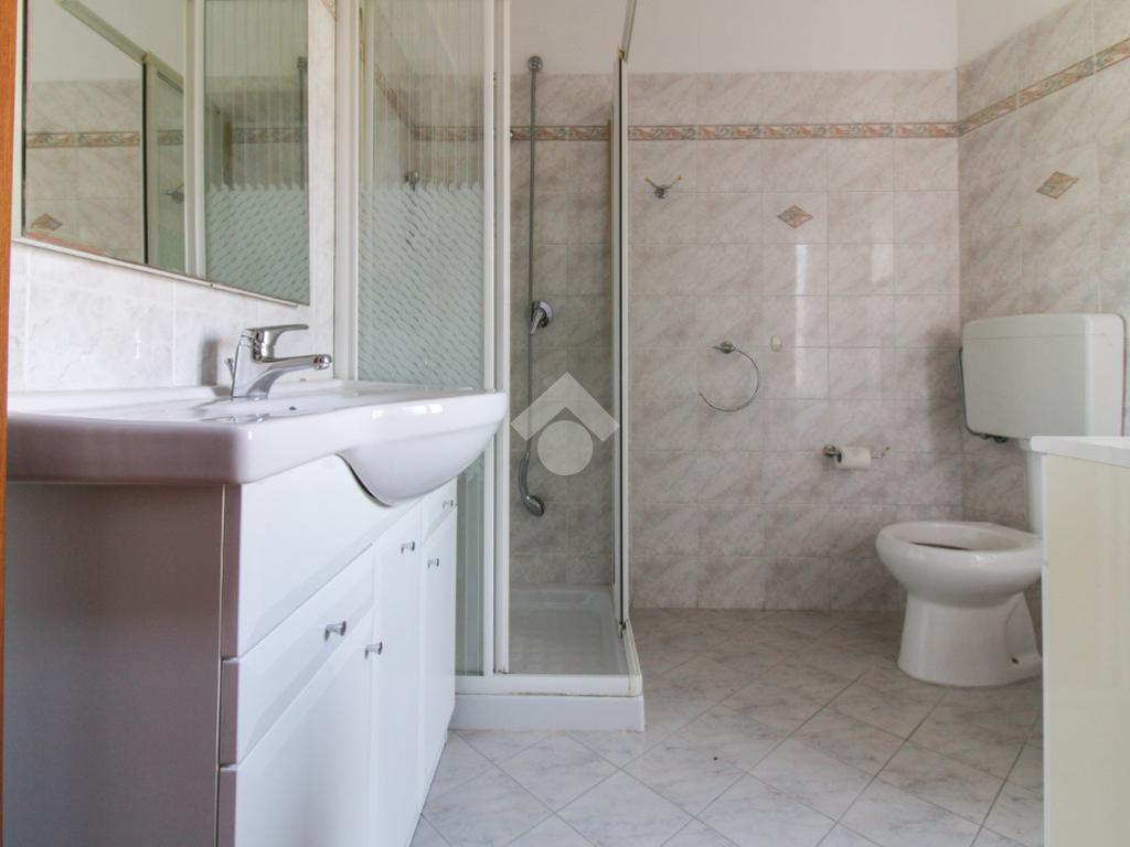 Scendendo al piano terra, sempre tramite la scala interna, troviamo un secondo bagno con doccia e l’accesso diretto al box auto singolo, che può essere sfruttato anche come cantina o spazio di stoccaggio. La corte condominiale consente inoltre il parcheggio di un secondo veicolo proprio di fronte all’ingresso dell’autorimessa.