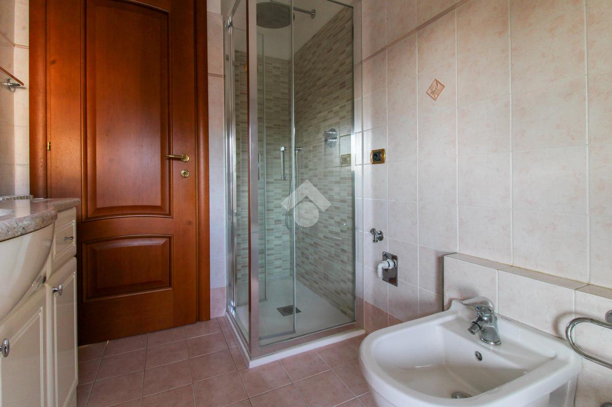 Un secondo disimpegno ci accompagna verso la zona notte, composta da una camera matrimoniale e una camera singola, entrambe con accesso diretto a un balcone esterno comunicante. Sul lato sinistro dell'area notte troviamo invece il bagno finestrato, rifinito con sanitari in ceramica e dotato di doccia.