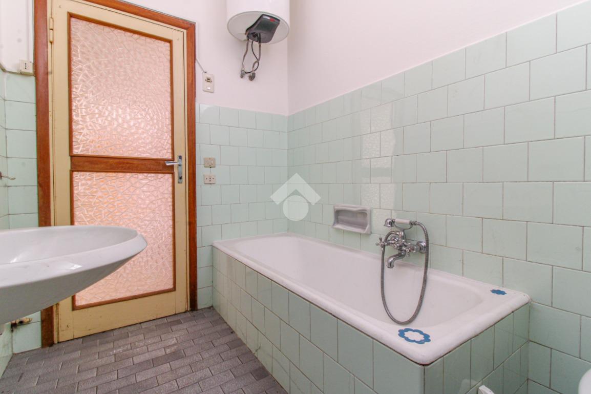 Proseguendo verso la zona notte, il disimpegno ospita un pratico armadio a muro ideale per ottimizzare al meglio gli spazi, introducendo alla camera da letto matrimoniale, resa particolarmente luminosa dalla doppia esposizione garantita dalle due ampie finestre. Completa l'interno un bagno finestrato, rifinito con sanitari in ceramica e dotato di vasca.
